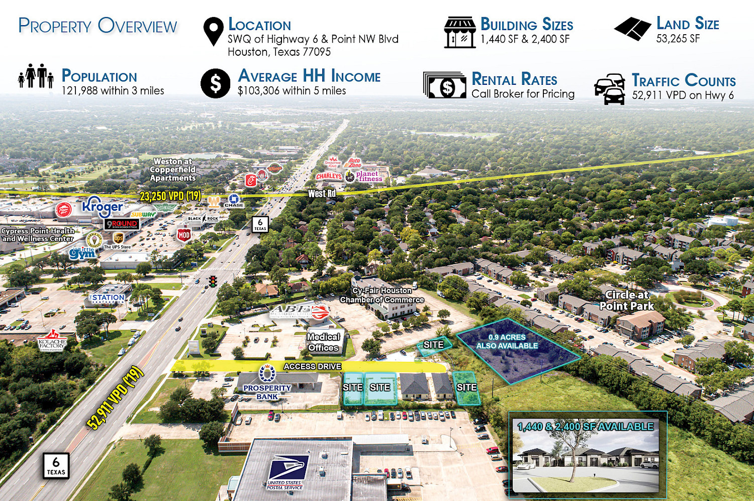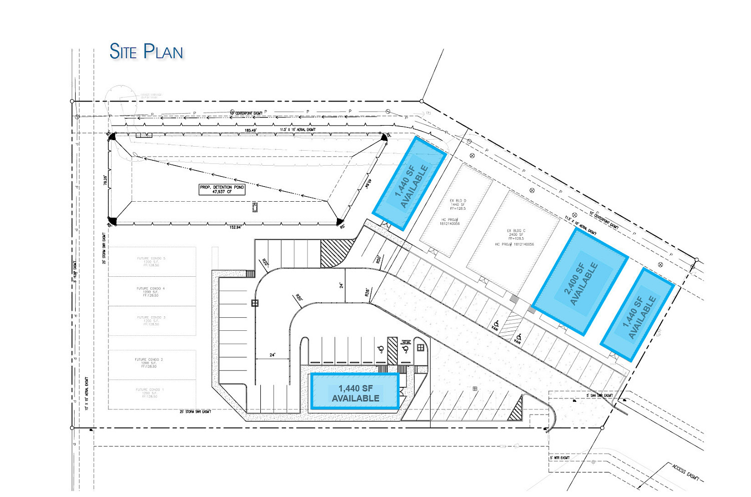 1,440 & 2,400 SF freestanding buildings.